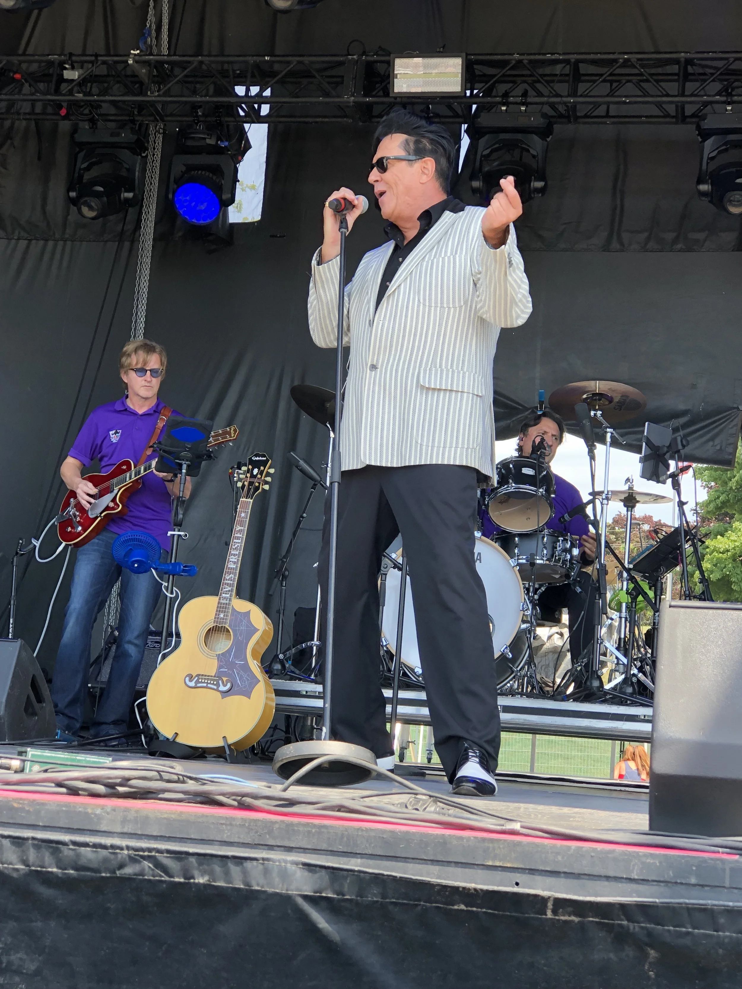 The Port Colborne website had the time listed as 11:00 am, but Brent was sure their show time was 12:00. Not wanting to miss a second of seeing two of my favourite ETAs, I arrived in plenty of time to park my car and make my way to the stage. As I entered the park, I could hear the unmistakable voices of The Roulettes. In the far distance I could see Matt and Brent on stage doing a sound check with The Casino Brothers band. Matt and Brent sang only a few notes of familiar Elvis songs during the sound check, but from what I heard, I knew that they both were primed and ready to give the gathering crowd an afternoon to remember.